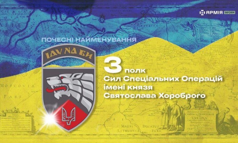 Почесні найменування: 3 Полк Сил Спеціальних Операцій імені князя Святослава Хороброго