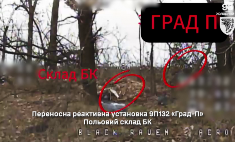 Бійці батальйону безпілотних систем Black Raven 93-ї механізованої бригади «Холодний Яр» знищили переносну ворожу реактивну систему залпового вогню та склад боєприпасів до неї.