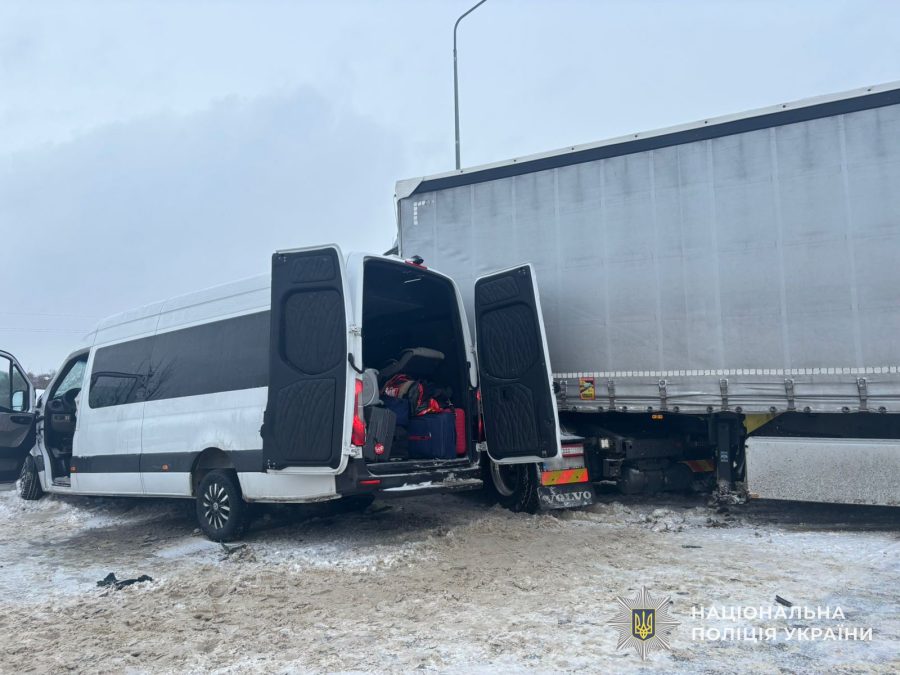 За попередніми даними правоохоронців, зіткнулися мікроавтобус Mercedes-Вenz та вантажівка Volvo, за кермом яких перебували 38-річні водії. У результаті ДТП загинула 34-річна пасажирка мікроавтобуса, ще п’ятьох пасажирів віком від 18 до 61 року з травмами доставили до медзакладів.