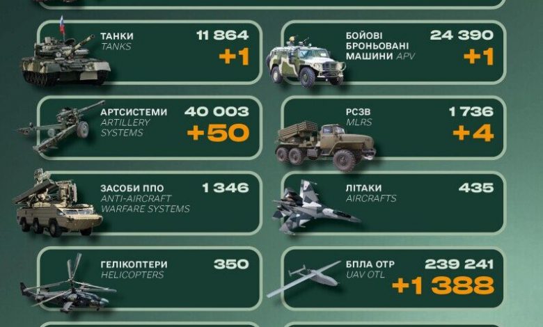 - БПЛА оперативно—тактичного рівня — 239 241 (+1 388) од.;