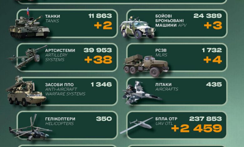 - БПЛА оперативно—тактичного рівня — 237 853 (+2459) од.;