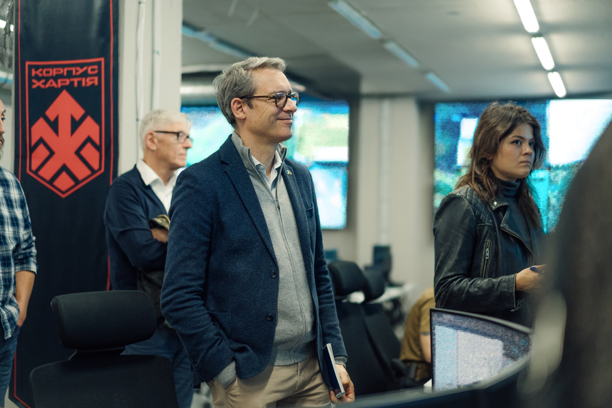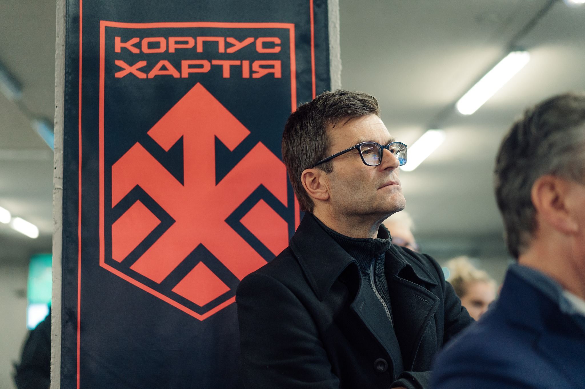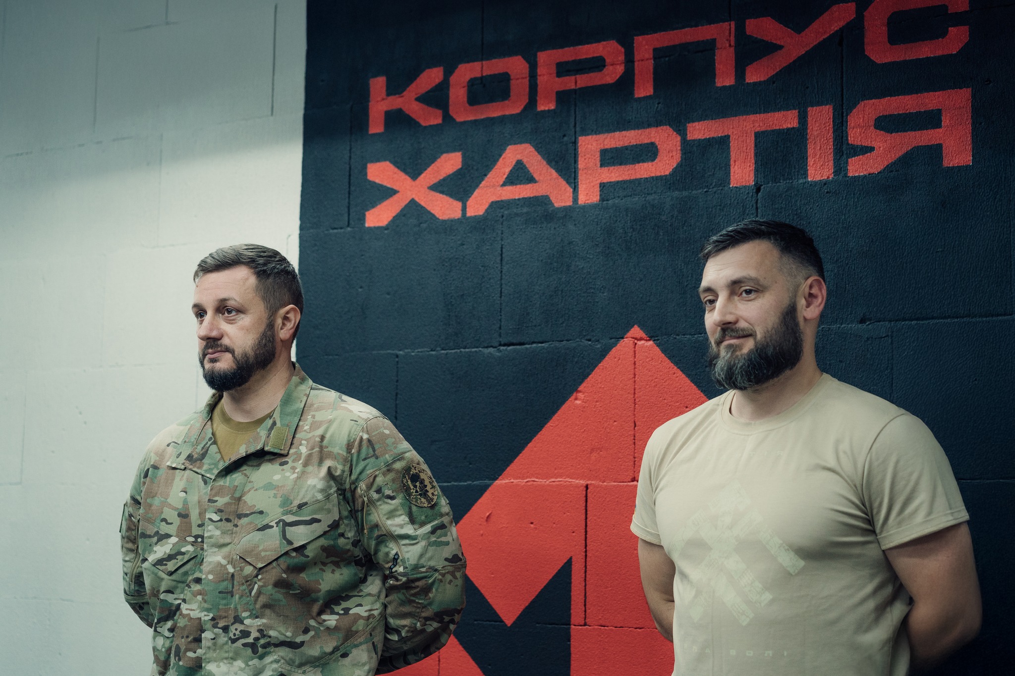 Командир корпусу Ігор «Корнет» Оболєнський та перший заступник командира — начальник штабу корпусу Максим «Альтаїр» Голубок ознайомили високоповажних гостей із принципами роботи, організаційною структурою та бойовими підходами підрозділів «Хартії».