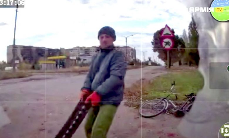 Як видно на оприлюднених кадрах, проїжджаючи повз на велосипеді, чоловік зупинився поруч з пошкодженим НРК та почав його лагодити.
