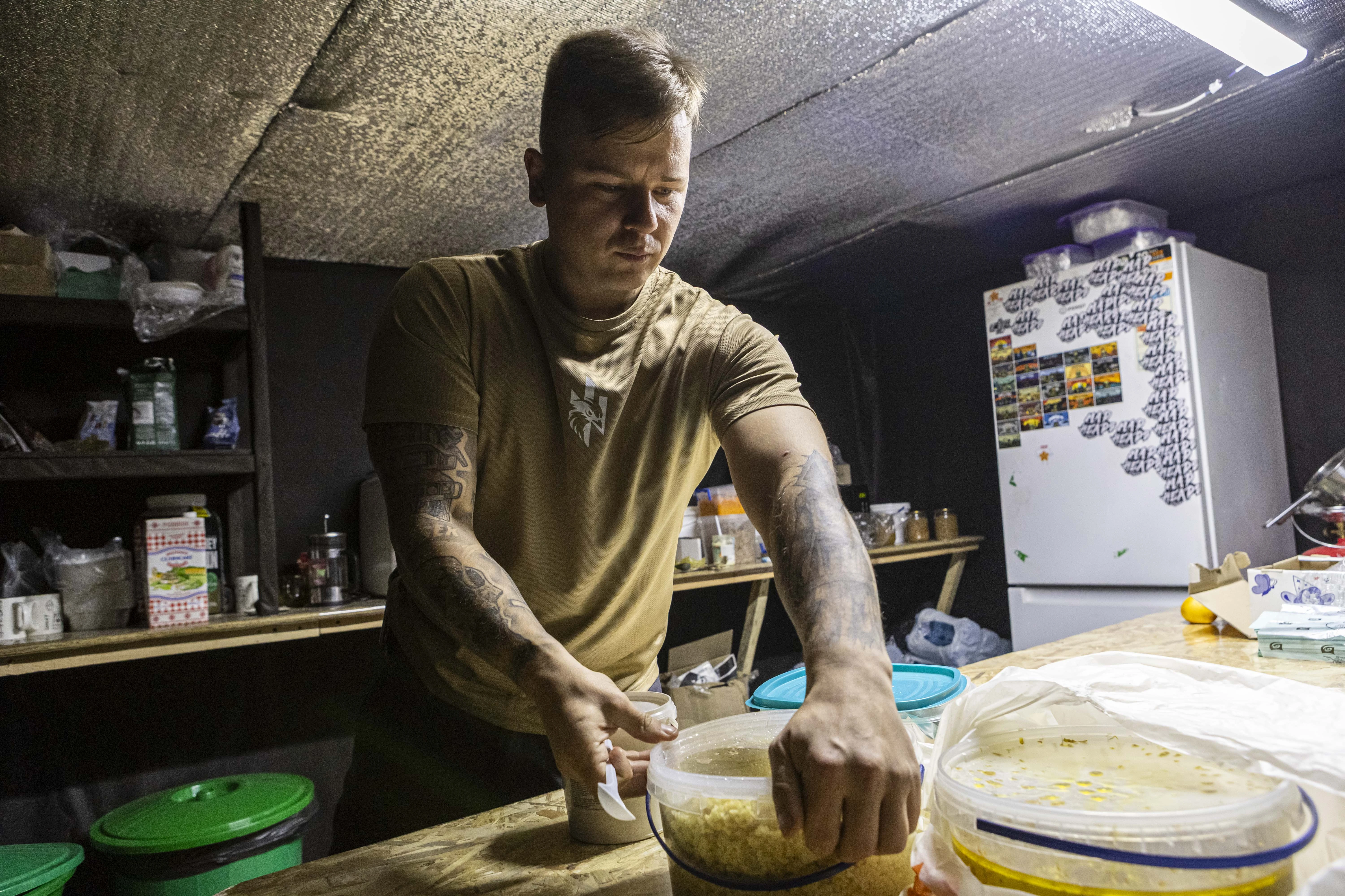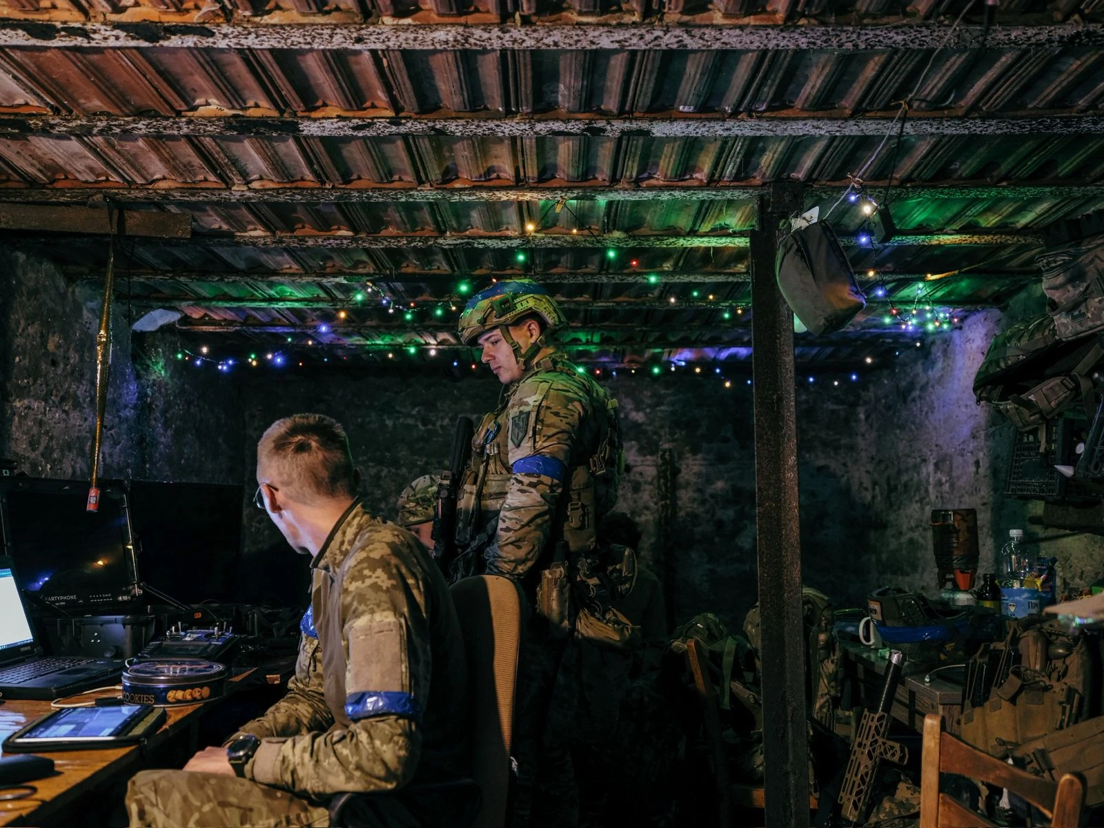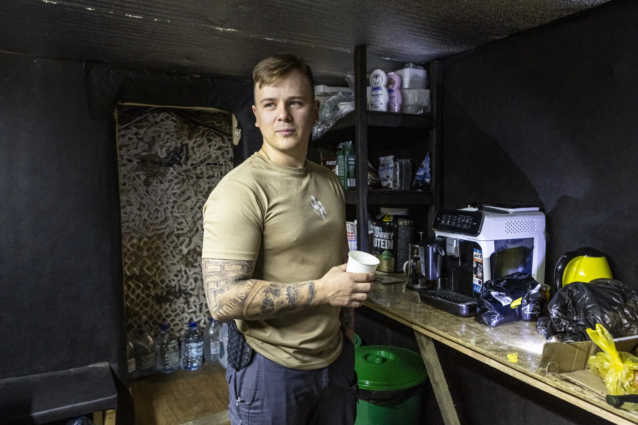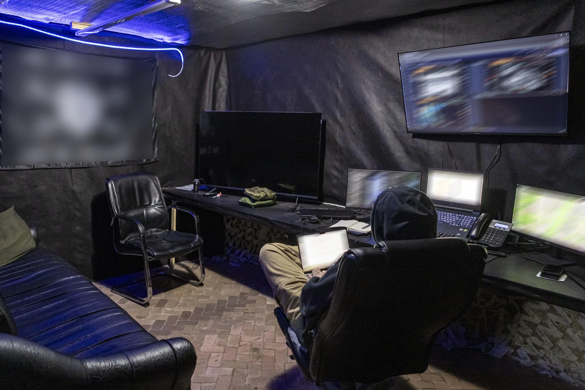 — Воювати потрібно з комфортом, — жартує «Холод». — Відповідно, якщо є можливість добре облаштуватись, ми це робимо. Це звичайний підвал. І доводилося його чистити буквально власними руками. Тут у нас робочі місця, звідки ведеться управління і контроль наших позицій, — пояснює він.