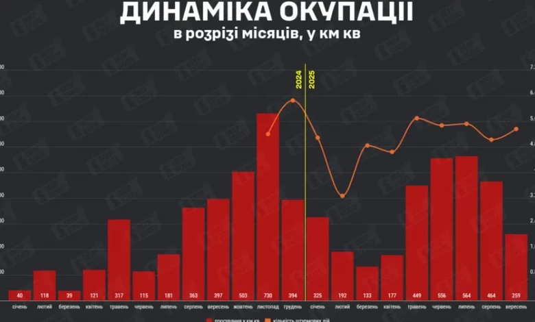 За даними аналітиків, у вересні російська армія змогла окупувати 259 кв. км – це найменший показник із травня. Порівняно з серпнем просування скоротилося на 44%. Загалом під контролем РФ наразі перебуває близько 19,04% території України.