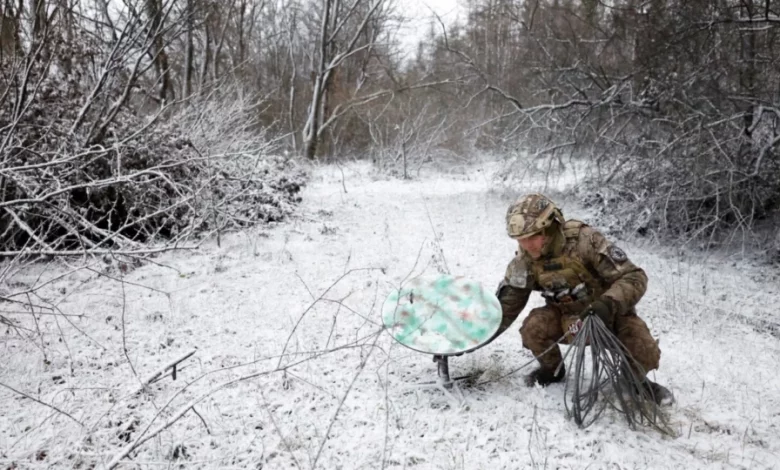 Розгортання обладнання системи супутникового зв’язку Starlink на одній із бойових позицій Сил оборони. Фото: ЗСУ