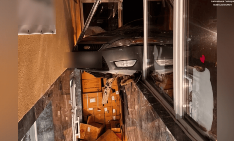 П’яний водій у Львові влетів у ветклініку та «завис» у вітрині