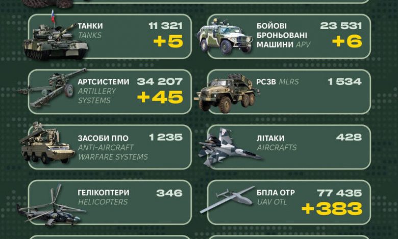 П’ять танків, 45 артсистем та більше 1100 окупантів: Генштаб оприлюднив втрати ворога за добу