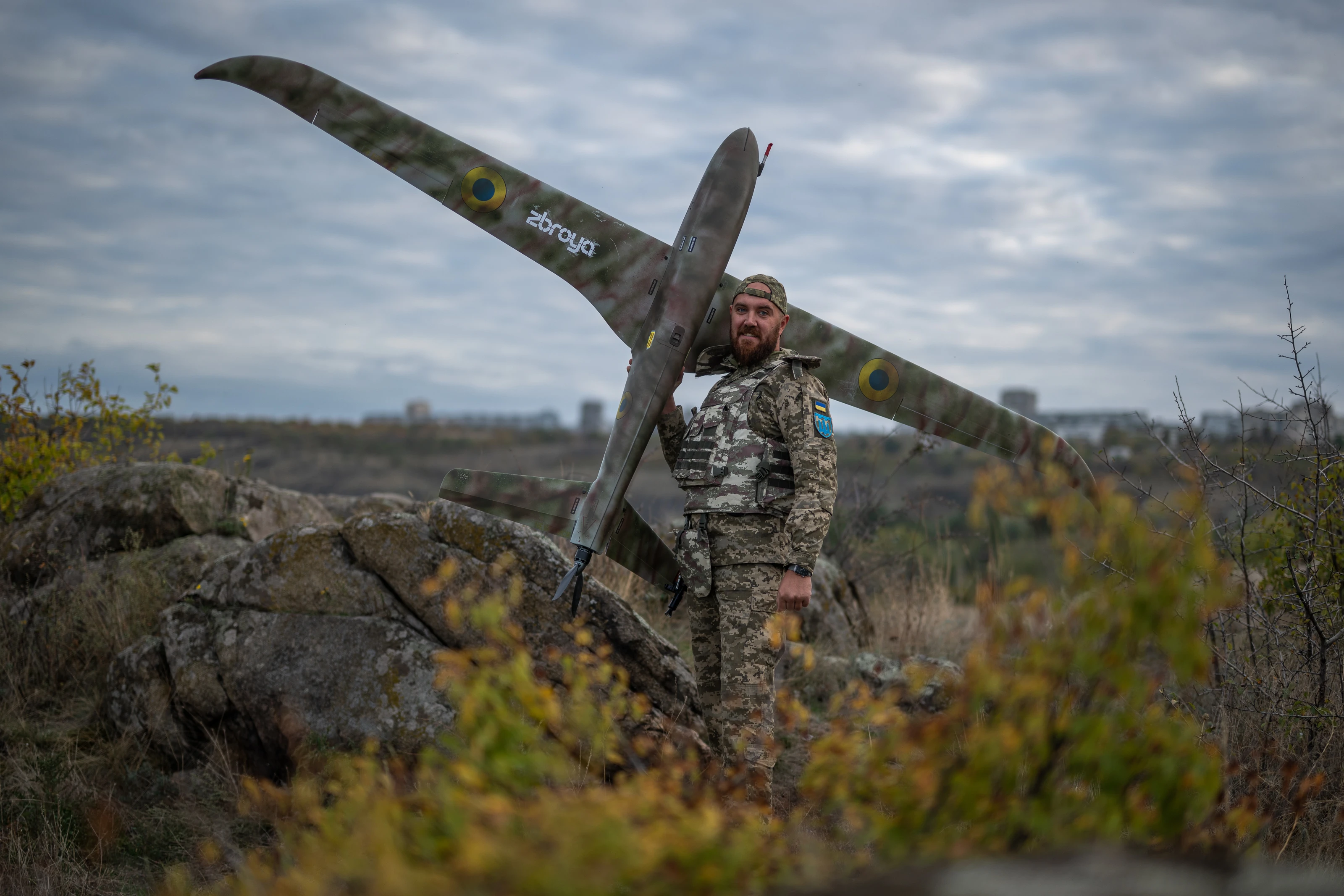 Сфотографувати «Фурію» в польоті непросто, адже вона стрімка і далекосяжна. Дрон здіймається над полем бою і ширяє у височині недоступний людському окові і навіть професійній апаратурі. Однак на землі в руках українських воїнів вона покірно й лагідно «позує» фотографові, показуючи досконалі обтічні форми свого окриленого корпусу.