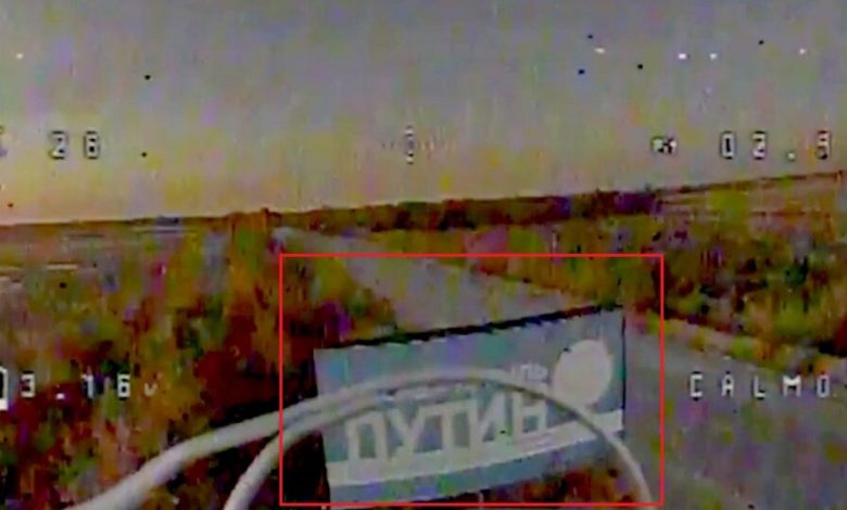 На тимчасово окупованій рф території Запорізької області оператори безпілотних систем полку імені Кастуся Калиновського влаштували росіянам засідку прямо під рекламою кремлівського диктатора путіна.