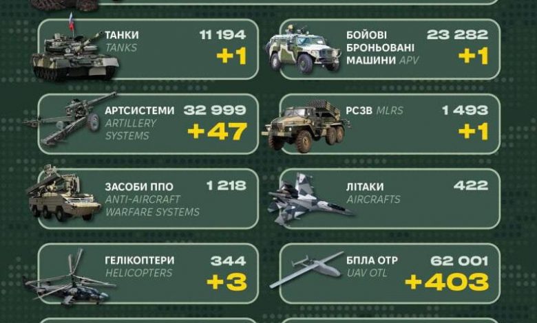 Таким чином загальні бойові втрати противника з 24.02.22 по 22.09.25 орієнтовно становлять: