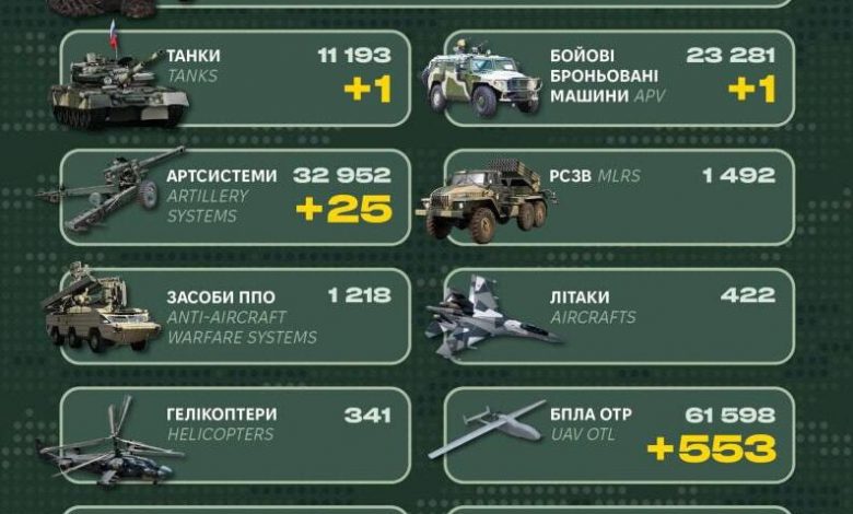 Таким чином загальні бойові втрати противника з 24.02.22 по 21.09.25 орієнтовно становлять: