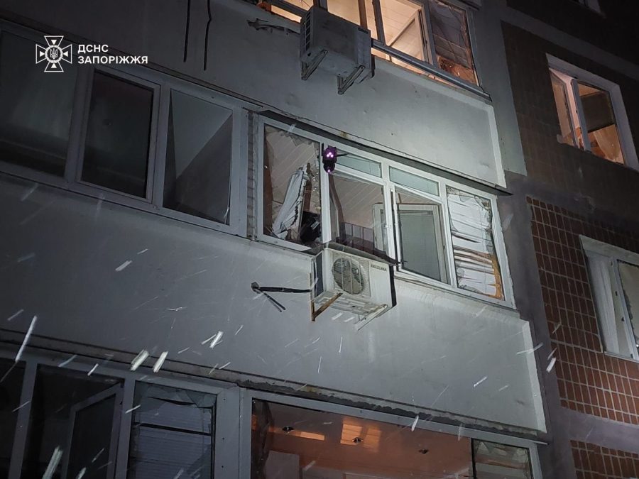 Голова Запорізької ОВА Іван Федоров додав, що внаслідок удару «Шахеда» пошкоджені вікна, балкони та фасади житлових будинків, а також дорожнє покриття і нежитлове приміщення.