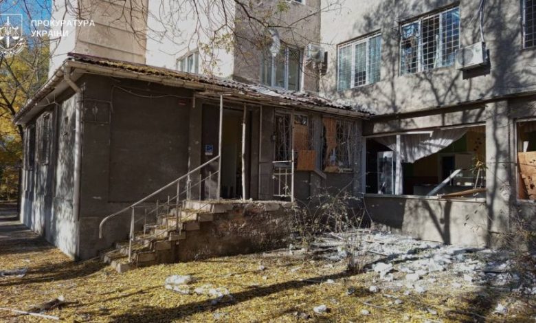 Будівля дитячої лікарні у Херсоні після ворожого обстрілу. Фото: прокуратура Херсонщини