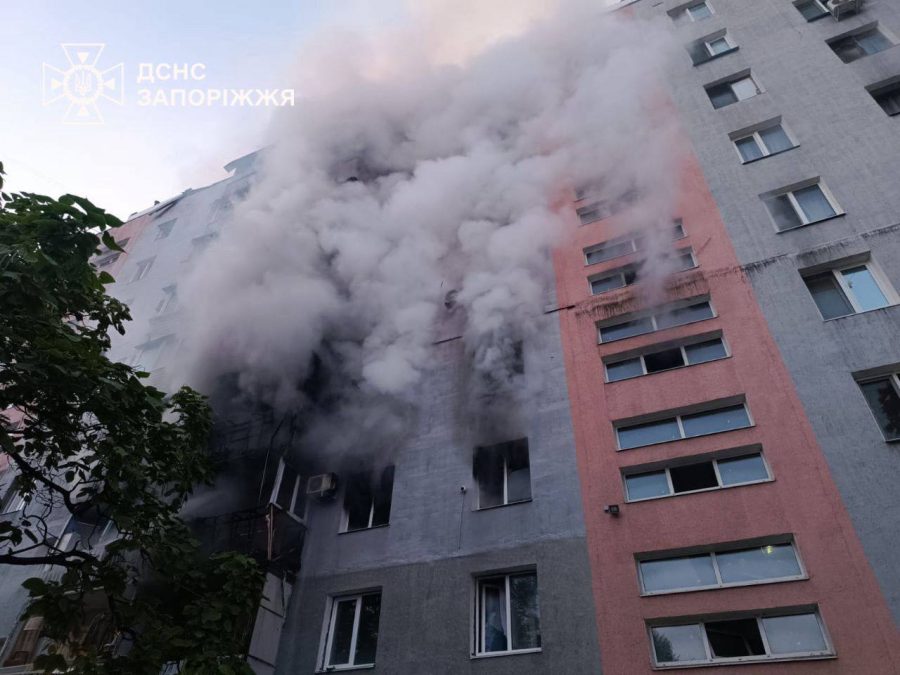 Водночас у ДСНС розповіли, що війська РФ ракетою влучили поруч із 9-поверхівкою, у результаті чого загорілися кілька поверхів у двох під’їздах.