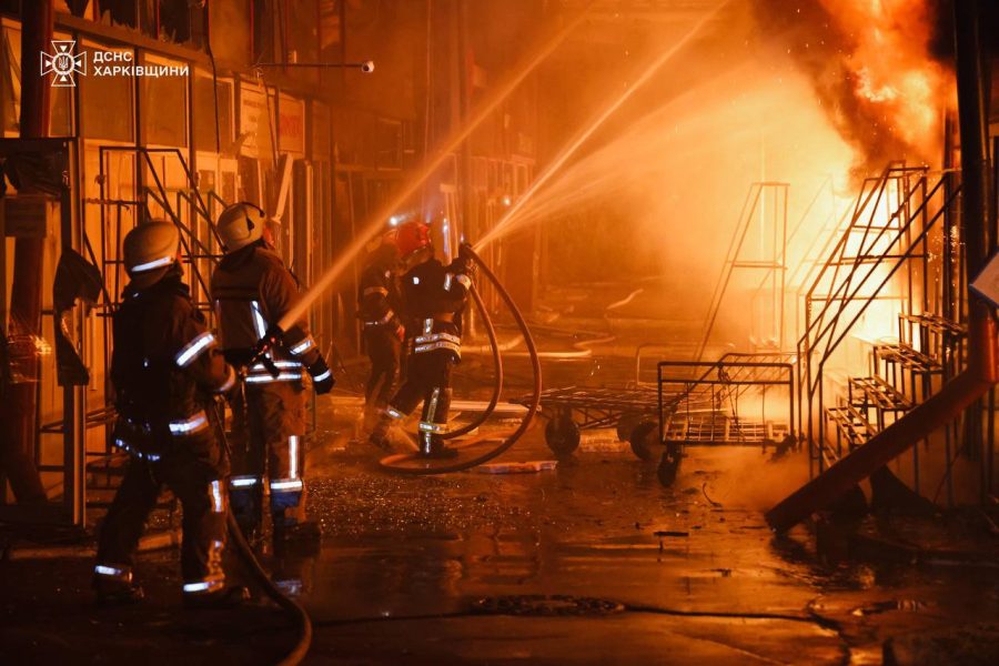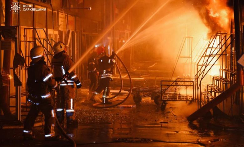 Як додали у ДСНС, масована атака прийшлась не лише по Харкову, а й по передмістю Чугуївського району. Пожежа в торгівельних павільйонах сягнула 2800 м кв.