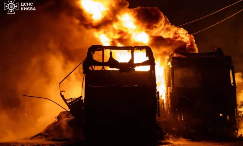 У Дніпровському районі через падіння уламків виникла пожежа в гаражному кооперативі, також загорівся бензовоз на стоянці. У багатоквартирному житловому будинку вибито вікна.