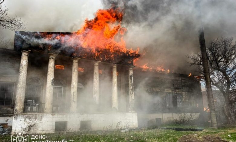 У ДСНС кажуть, що війська РФ атакували дерев’яну двоповерхову пам’ятку дроном, після чого так спалахнула. Пожежа була масштабною й охопила всю будівлю площею близько 2000 м кв. Обійшлося без постраждалих.