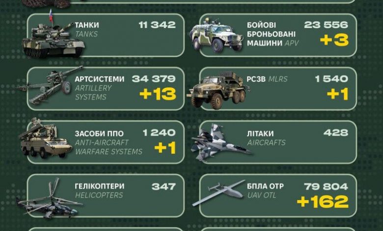 - засоби ППО — 1 240 (+1) літаків — 428 (+0)