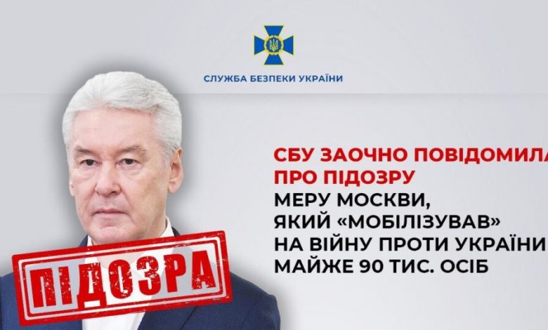 Служба безпеки України зібрала докази воєнних злочинів з боку мера москви Сергія Собяніна та заочно повідомила йому про підозру — зокрема за організацію масової «мобілізації» жителів російської столиці на війну проти України.