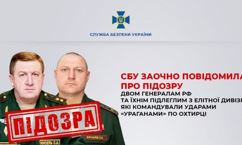 Служба безпеки України заочно повідомила про підозру шістьом високопоставленим офіцерам збройних сил рф — від підполковника до генерал-лейтенанта. За даними слідства, 25 лютого 2022 року вони віддали наказ обстріляти Охтирку з реактивних систем «Град» та «Ураган», що призвело до загибелі дев’яти мирних мешканців, серед яких була дитина.