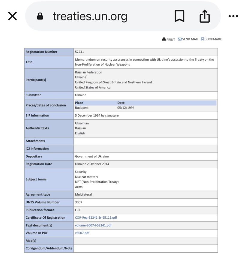 P.S. Ну і “вишенкою на торті” є той факт, що лише 2 жовтня 2014 року Будапештський меморандум був офіційно зареєстрований в Секретаріаті ООН. Україною. Інші підписанти цим не переймалися. А власне для чого це було б їм потрібно! Чи я мав би з цього розпочати?».