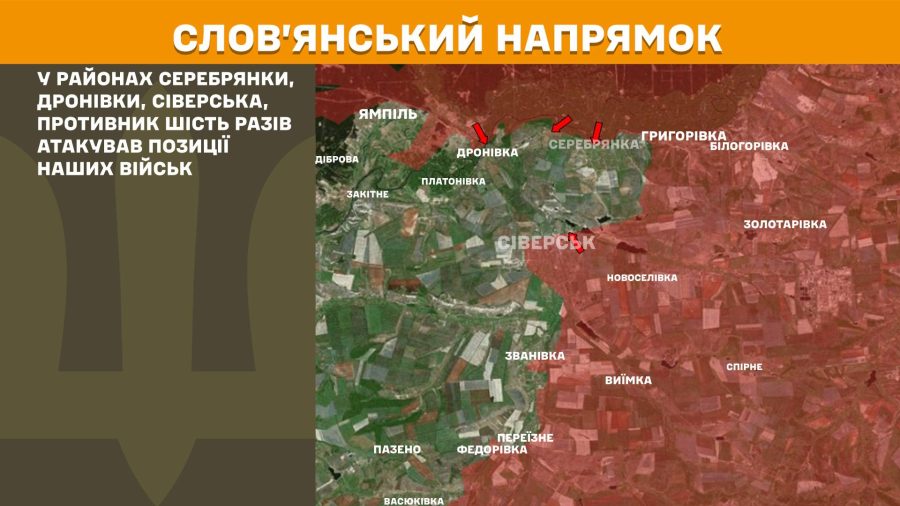 На Слов’янському напрямку рашисти шість разів атакували позиції наших військ у районах Серебрянки, Дронівки, Сіверська.