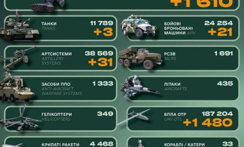 За минулу добу російські окупаційні військи втратили на фронті 1610 військових.