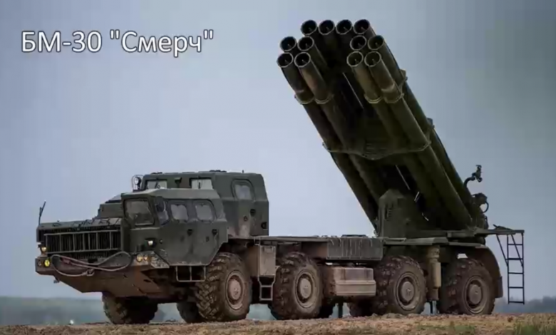 БМ-30 «Смерч» може уражати цілі на відстані до 90 кілометрів і є найбільш далекобійною російською системою РСЗВ.