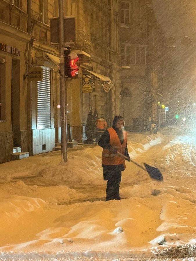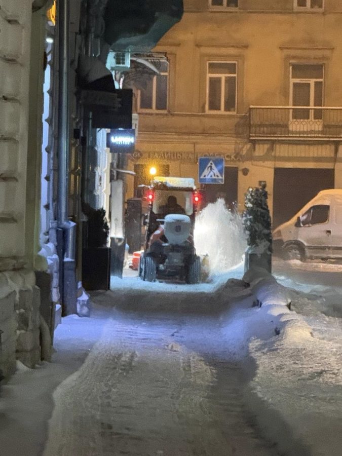 За словами міського голови Андрія Садового, комунальні служби працювали цілу ніч і розчищали вулиці й дороги від снігу. Станом на ранок опади не вщухають, тому навіть розчищені ділянки невдовзі знову засипе. Бізнес закликають самотужки розчищати свої території, а львів’ян – не перешкоджати роботі техніки запаркованими автомобілями.