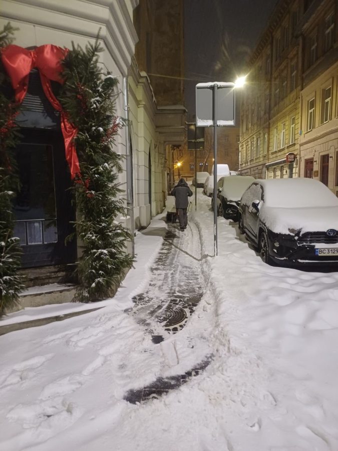 Протягом ночі 8 січня і весь ранок у Львові безперервно падає сніг. До розчищення доріг і вулиць залучили всю техніку, комунальні служби працюють у посиленому режимі. Підприємців та самих львів’ян закликають долучитись до прибирання й допомогти завантаженим роботою комунальникам. На Сихові двірників пригощали гарячими напоями. Про це повідомляє Львівський портал.