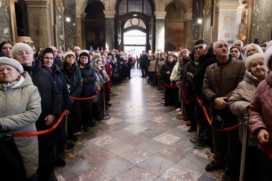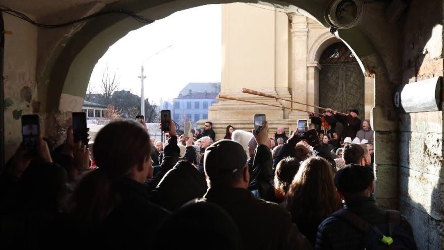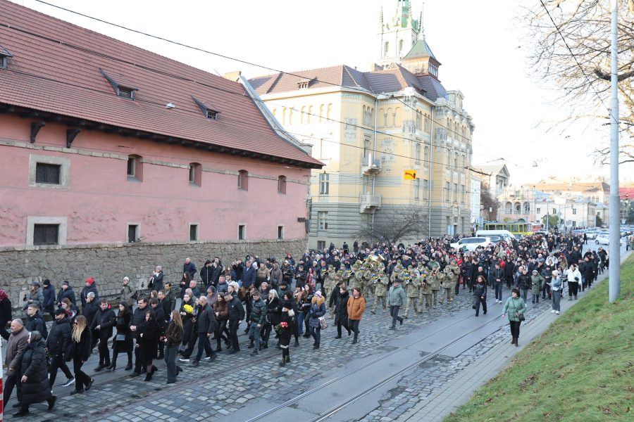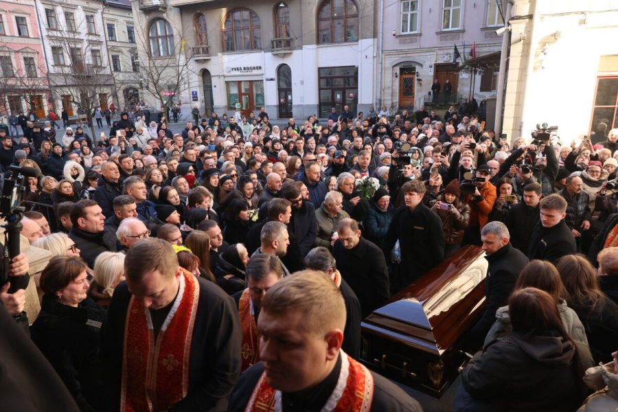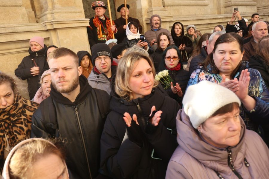 Коли домовину виносили з храму, лунали трембіти – звук карпатського інструмента, яким традиційно супроводжують гуцульські обряди.