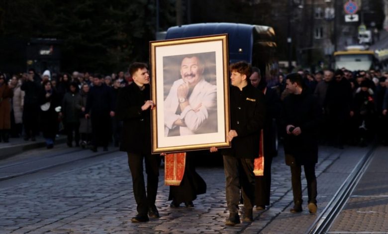 Опісля відбулася загальноміська церемонія прощання на площі Ринок. Під час неї міський сурмач виконав фрагмент пісні артиста «У райськім саду (Яворина)», зокрема приспів: «На могилі моїй посадіть молоду яворину…».