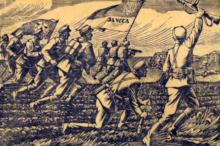 Дереворит Ніла Хасевича «Повстанці у наступі»