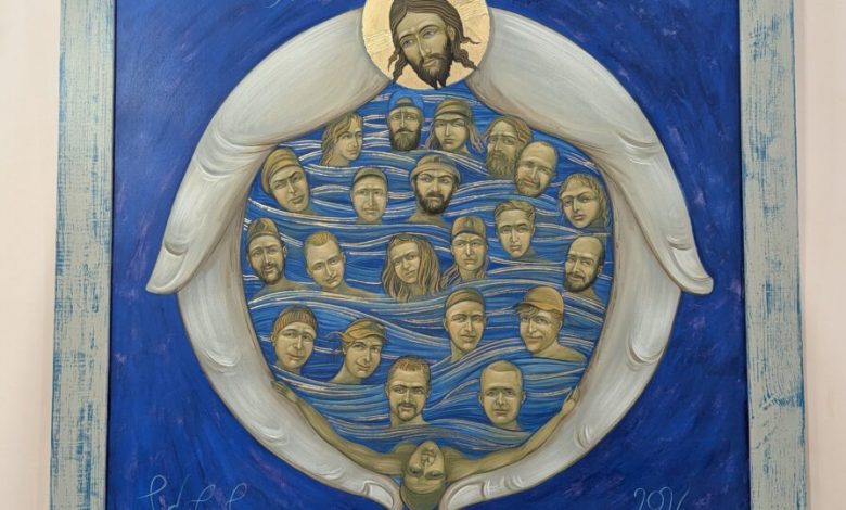 Експозиція охоплює понад 40 робіт і присвячена сучасним святим — українському воїнству, що протистоїть смертопоклонникам путінської імперії зла.