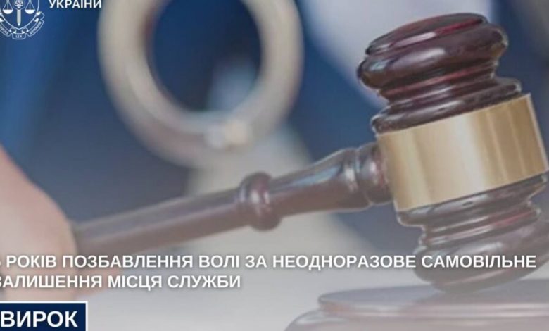 Полтавський районний суд Полтавської області визнав офіцера ЗСУ винним у неодноразовому самовільному залишенні місця служби в умовах воєнного стану та призначив йому покарання у вигляді п’яти років позбавлення волі.
