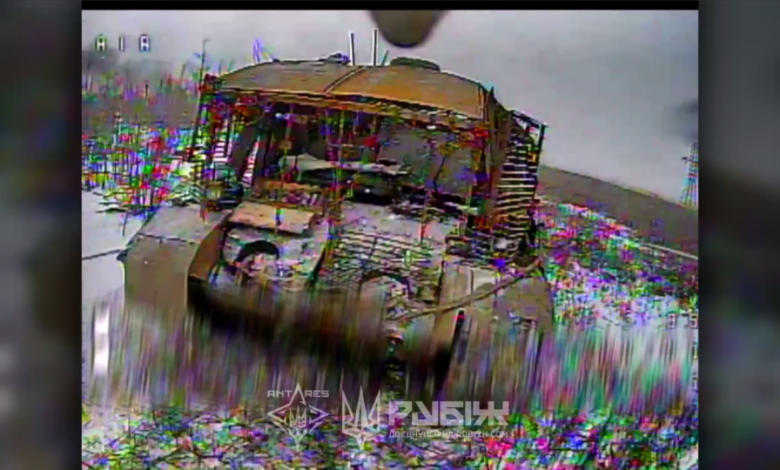 Антидроновий захист не врятував російську бронетехніку. Скрін з відео бригади «Рубіж»