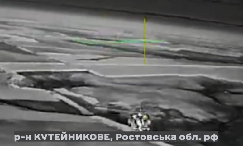 На кадрах відео вказується, що вертоліт був збитий в районі населеного пункту Кутейніково, Ростовської області рф безпілотником FP-1.