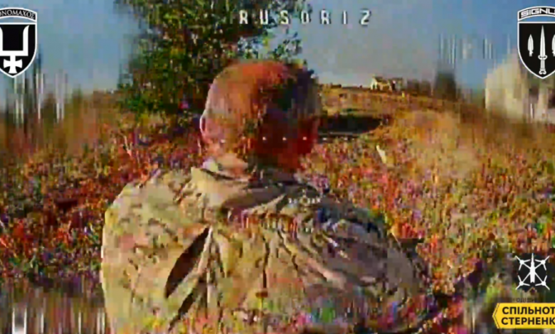 Біля розвалин знайшовся окупант, який, мабуть, не очікував гостей з неба. Зреагувати він не встиг і дрон зробив свою роботу.
