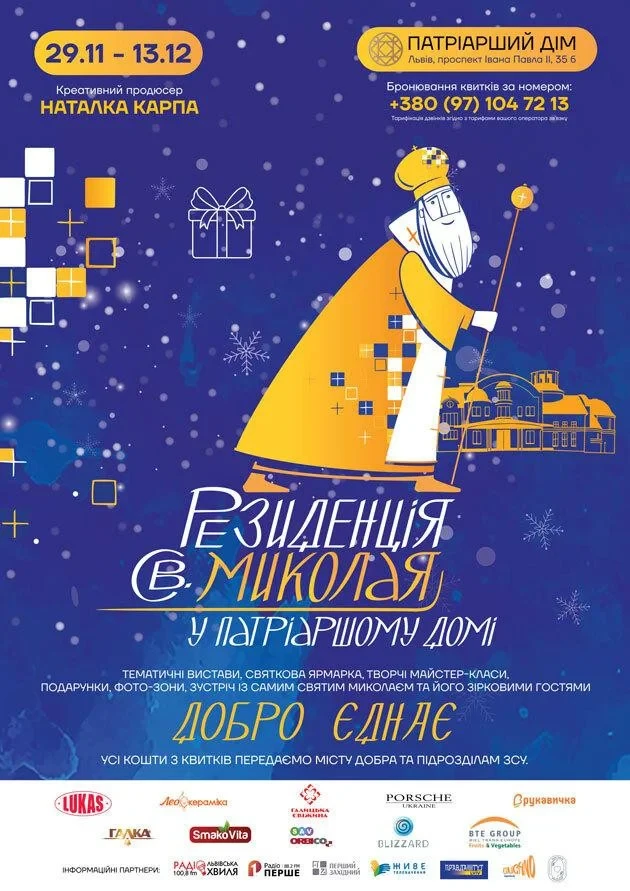 На дітей чекає особиста зустріч із Миколаєм, різдвяна квест-пригода та майстеркласи — від шоколадного малювання до виготовлення свічок та солом’яних янголів.