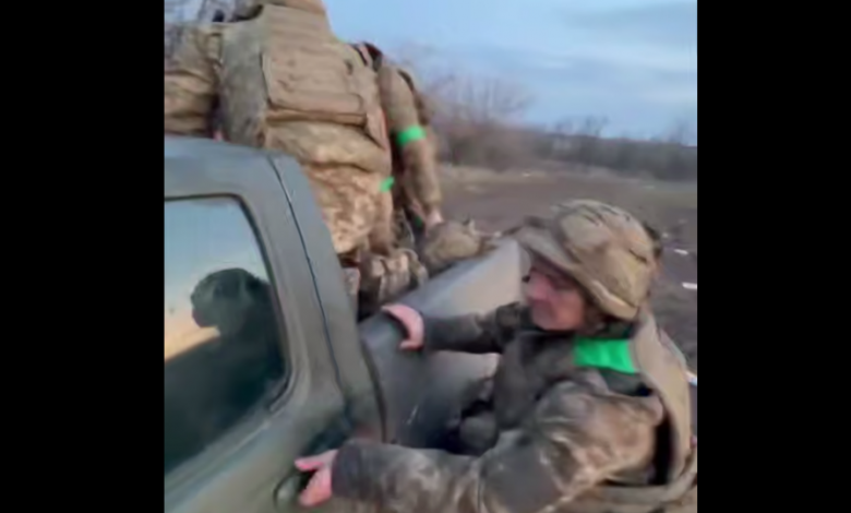 Бійці, що повертаються з виходу, вантажаться у пікап. Скрін з відео 110-ї бригади