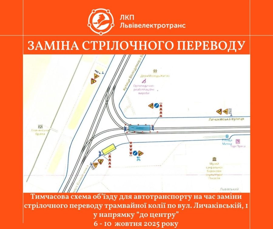 ЛКП «Львівелектротранс» з 7 жовтня проводитиме заміну стрілочного переводу на перехресті вулиці Личаківської та площі Митної. Про це повідомили у пресслужбі мерії.