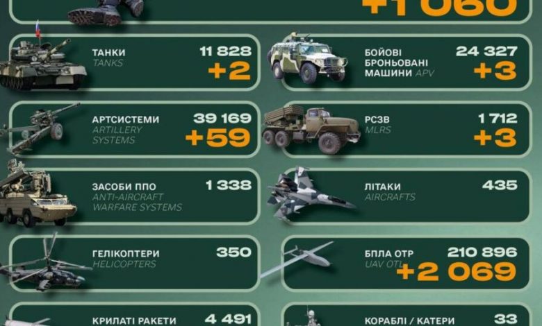 За минулу добу російські загарбники втратили 1060 військових вбитими та пораненими.