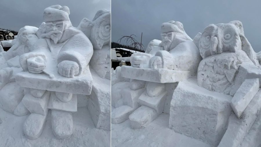 «Процес створення був не менш вражаючим, ніж результат. Сніг утрамбовували та впресовували вручну, а зимові морози стали природним союзником митців, надійно “скріпивши” конструкцію. Після роботи на висоті автори продовжили творчий діалог уже на землі, де з’явилася друга снігова скульптура з іншим художнім задумом», – йдеться у повідомленні.