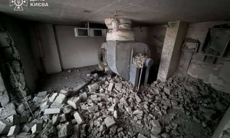Влучання сталося на рівні технічного поверху. Зафіксовано руйнування стіни на площі близько 4 кв. м без подальшого горіння.