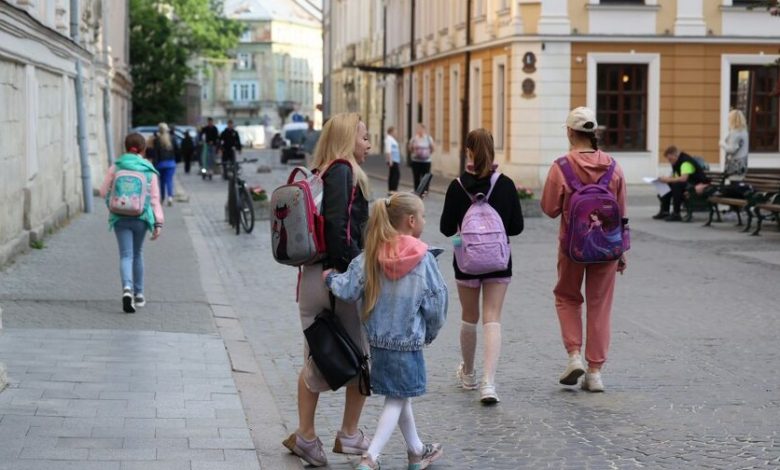 Школярі із батьками ідуть по вулиці. Фото: ілюстративне / ЛМР