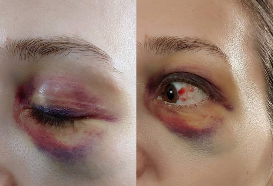 Око жінки після побиття неповнолітнім у трамваї. Фото: Віка Воловенко / Facebook