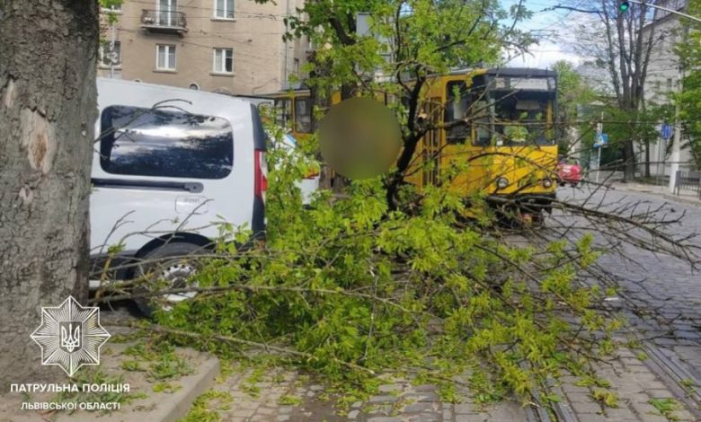 Водночас на вулиці Мельника (Залізничний район) через падіння дерева пошкоджено транспортні засоби та перекритий рух трамваїв.