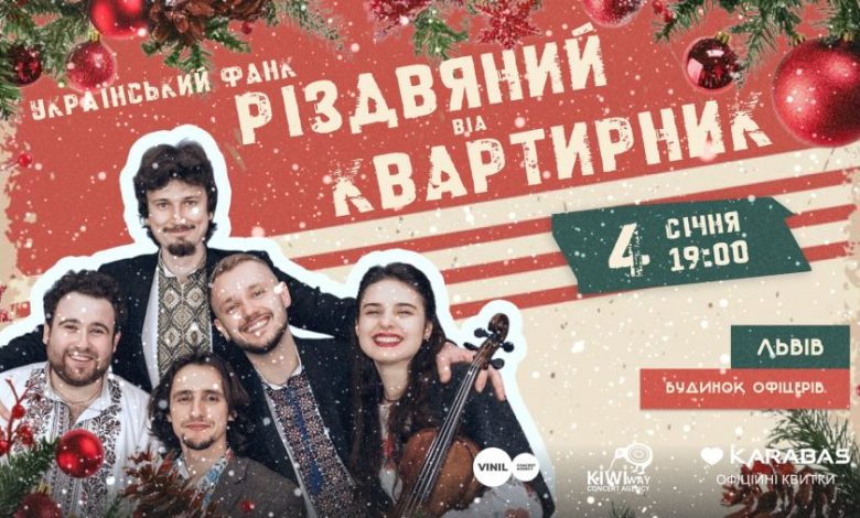 У неділю, 4 січня, у Будинку офіцерів відбудеться святковий концерт ВІА «Квартирник», який поєднає українську різдвяну традицію з енергією фанку. Про це Львівському порталу повідомили організатори Vinil concert agency.