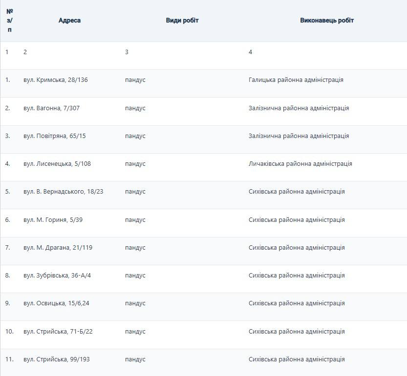 Перелік адрес, де у 2026 році облаштують елементи доступності (перелік протягом року може збільшуватися):
